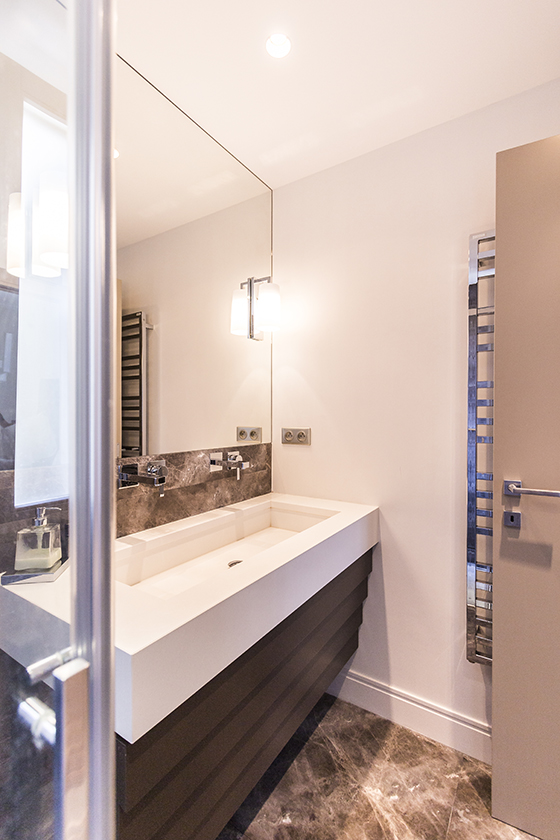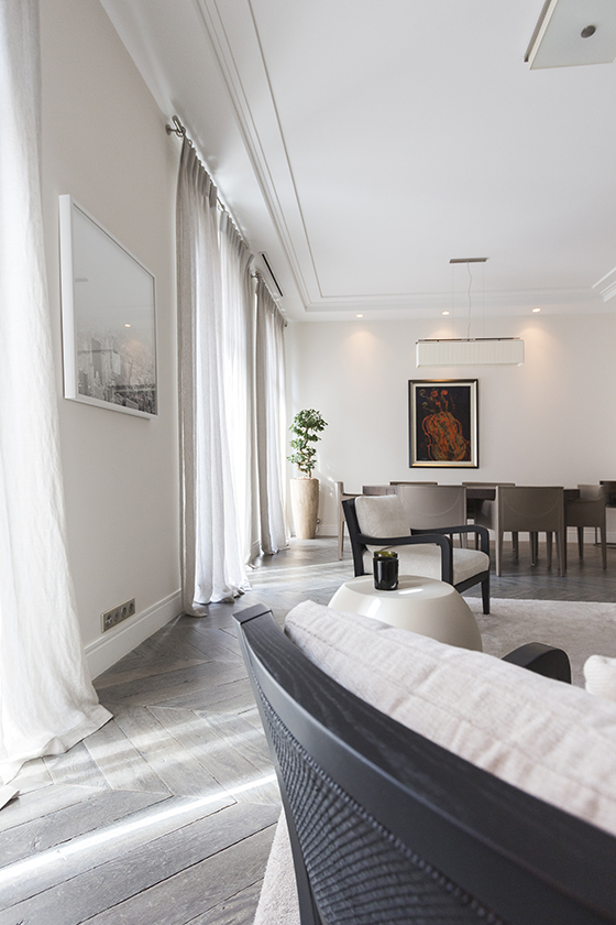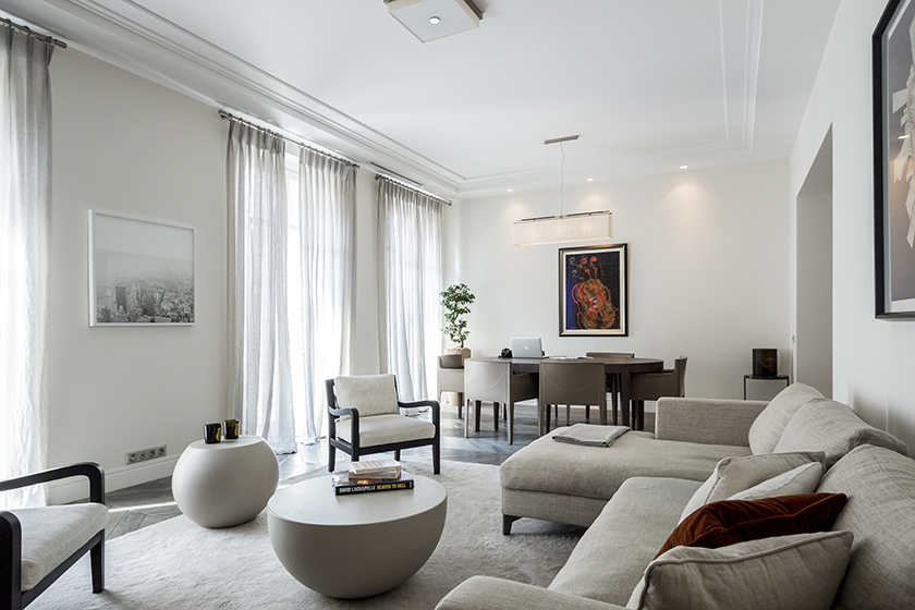 The successful transformation of an apartment at the heart of Nice, where the optimization of space allowed to preserve the volumes and the character of the past, while providing an unmistakably modern spirit. Nobility of materials, subtle choice of a furniture at the same time elegant and warm.
